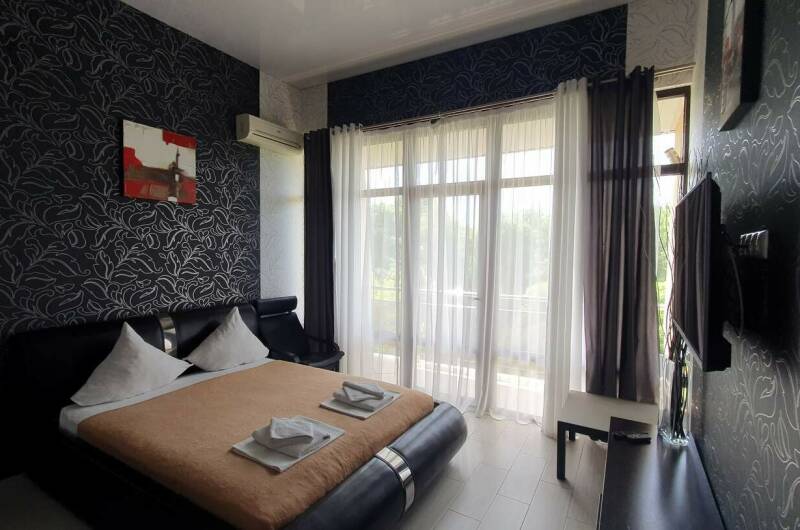 Наш гостевой дом располагает просторными номерами категории стандарт и повышенной комфортности. Во всех номерах установлены сплит-система, холодильник, телевизор, оборудованы санузлом с душевой. Номера повышенной комфортности имеют эксклюзивный авторский дизайн, оборудованы добротной мебелью, сейфом, балконом.