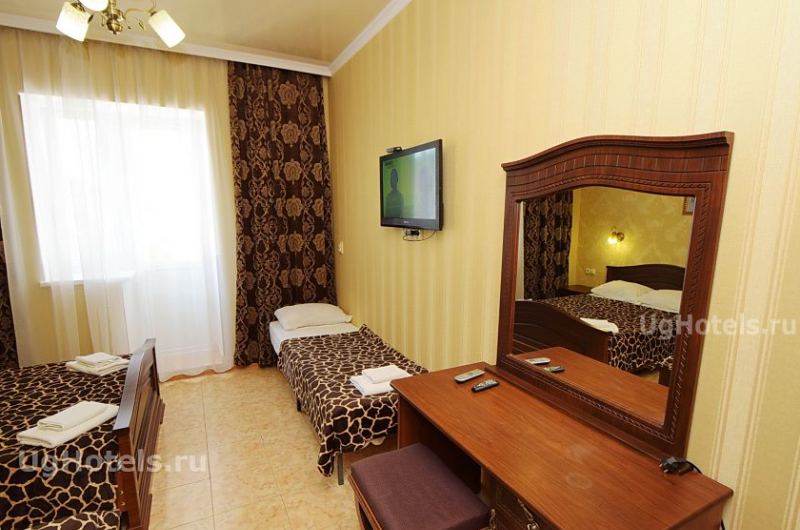 До галечного пляжа 300 метров или 3 минуты ходьбы. Предлагаются для проживания 2-х, 3-х местные однокомнатные номера со всеми удобствами: душ, туалет, сплит-система, телевизор, холодильник, балкон.
