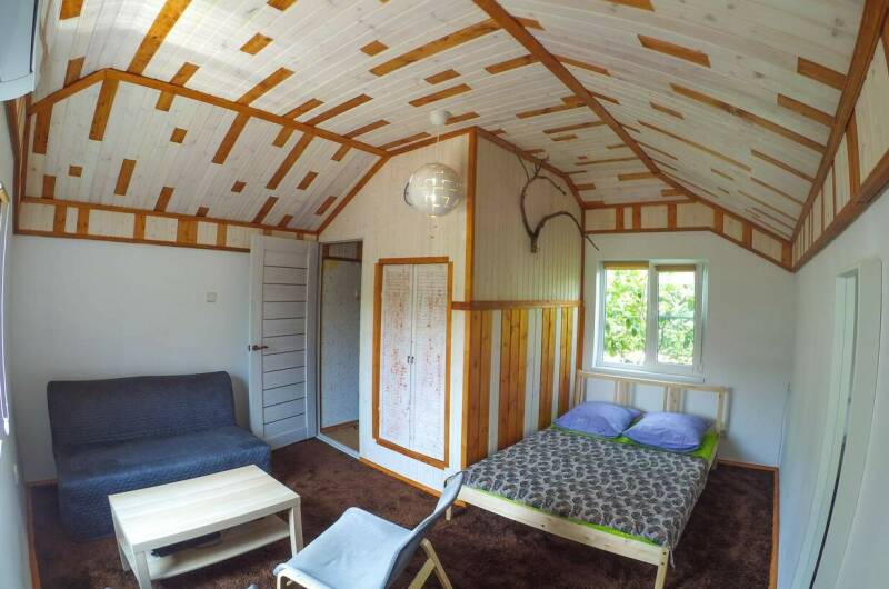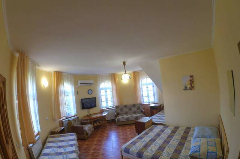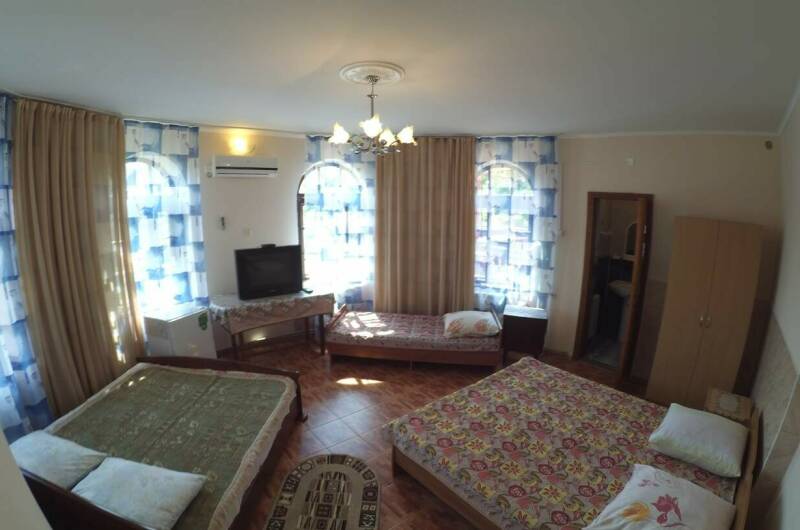 Большой зеленый двор с местами для отдыха. Удаленность от моря 900 м — 10−15 мин. пешком. Дорога к морю проходит по тенистой каштановой аллее вдоль реки Вулан. Удаленность от шумных баров и дискотек. В 3 минутах — река Вулан. От нас максимально удобно добираться к новому пляжу (Прохоровский) с чистой водой и меньшим количеством людей.
