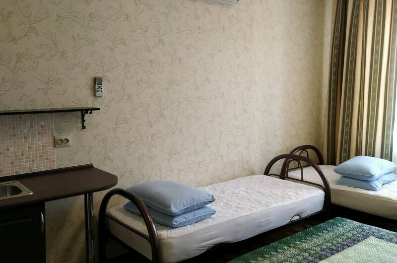 К Вашим услугам номера с удобствами, рассчитанные на проживание 2−3−4−5−6 человек. В номерах: односпальные и двуспальная кровати, вешалка, зеркало, сплит-система, душ, туалет. Всего 4 номера —2+1: 3+1-два номера: 4+диван (раскладывается). Площадь номеров: 14−20 кв.м. В номерах выполнен евроремонт.