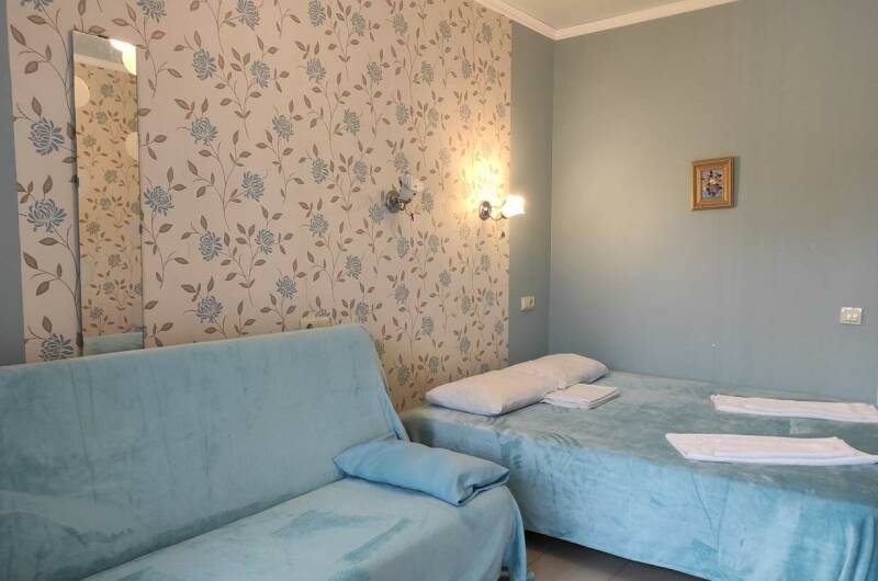 В гостевом доме к услугам гостей несколько комфортабельных трехместных номеров со всеми удобствами: холодильник, кондиционер, спутниковое телевидение, фен, чайник, индивидуальный набор посуды, по два полотенца на человека; ванная комната с душем и туалетом. Есть удобная общая кухня.