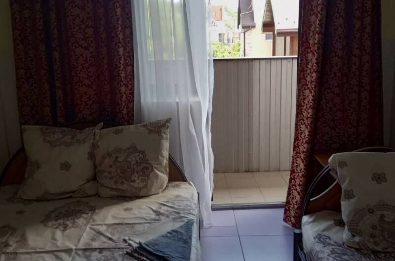 Вашему вниманию мы предлагаем двух, трех, четырех, пяти местные номера с мебелью и телевизором (с многоканальной антенной), с расположенным прямо в номере душем и туалетом. В наших номерах отсутствует только сплит-система, но это не является проблемой, так как гостевой дом находится в теневой зоне. В каждом номере есть вентилятор.