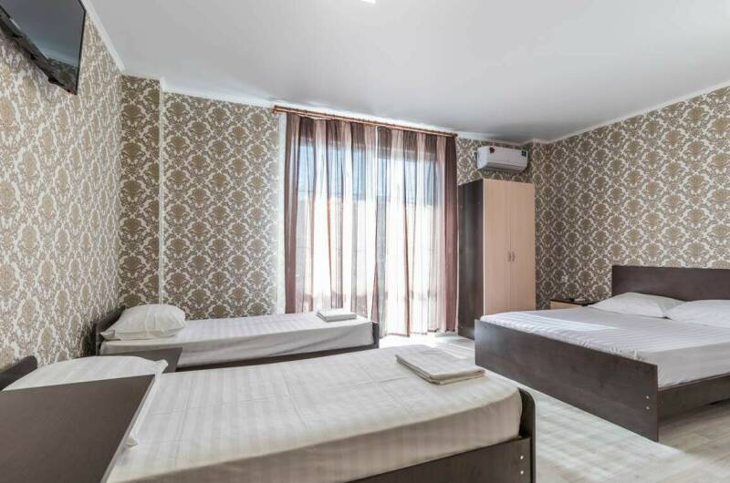 В глубине просторного зеленого двора находятся 2, 3 и 4 и 5 местные номера. На территории есть кухня с необходимым набором посуды для самостоятельного питания. Имеется автостоянка и бесплатный интернет Wi-fi.