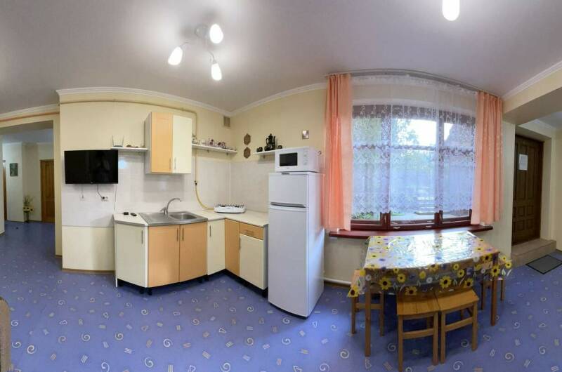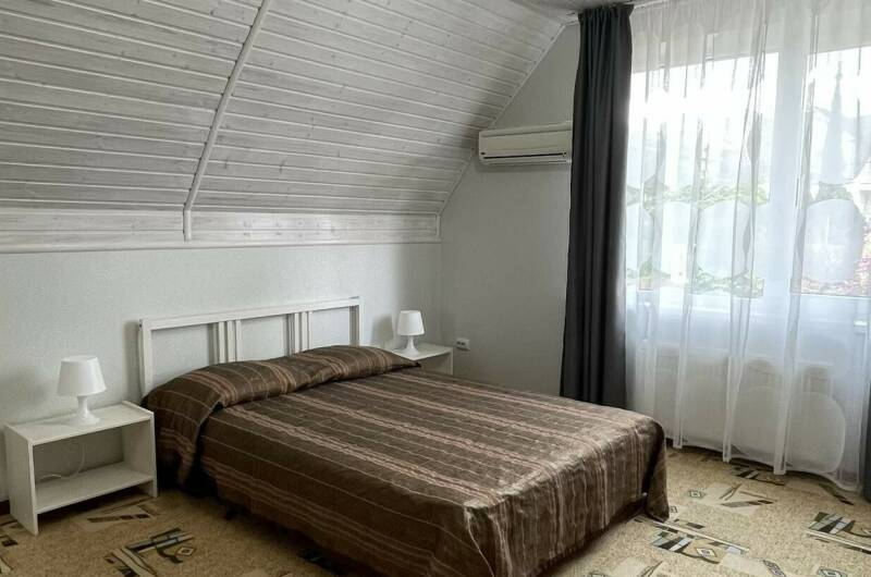 На мансардном этаже размещается один номер с кухней (25. кв. м) на 2-х человек (1 доп. место платно 700 руб). В комнате есть сплит -система, телевизор, кровать, тумбочки, вешалка для хранения вещей, санузел в номере, фен, утюг. На кухне есть все необходимое для приготовления еды, газовая плита, холодильник., микроволновая печь. Вода горячая, холодная круглосуточно. Номер студия 25кв. м. для двух человек (1 доп. место платно 700 руб.)В номере кровать, тумбочки, телевизор, сплит-система, вешалка для хранения вещей, кухня оснащена всем необходим для приготовления ...