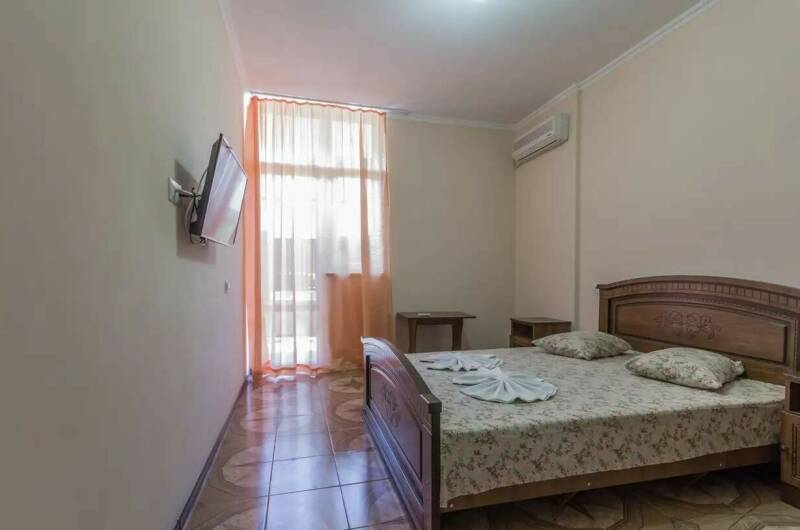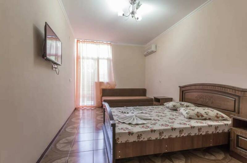 Для размещения на ваш выбор предоставляются стандартные номера 2-х, 3-х, 4-х, 5-ти местные с балконами. Есть 2х комнатные! Во всех номерах двуспальные, либо две, три односпальные кровати, прикроватные тумбочки, трельяж с зеркалом, шифоньер, стулья, столик, телевизор, холодильник, сплит-система. Санузел: умывальник с зеркалом, душ, туалет.
