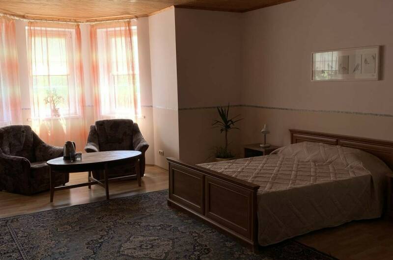 Удачное расположение номеров способствует обособленному отдыху гостей друг от друга. К размещению предлагаются трехместные, четырехместные (двухкомнатные) и шестиместные номера.