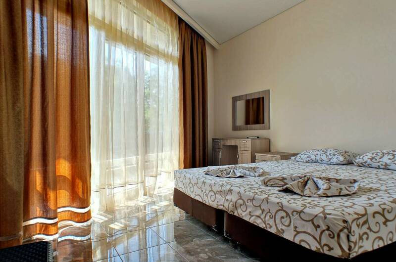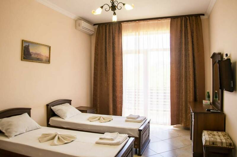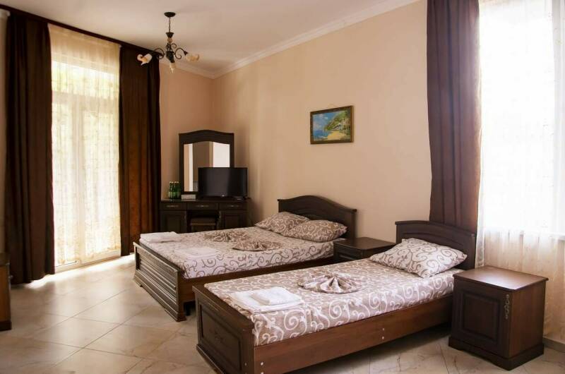 Для Гостей у нас предусмотрены комфортабельные номера со всеми удобствами. Светлые номера этого гостевого дома оформлены в классическом стиле. Каждый номер оснащен кондиционером, холодильником и телевизором с плоским экраном. Почти в каждом номере есть балкон.