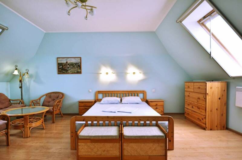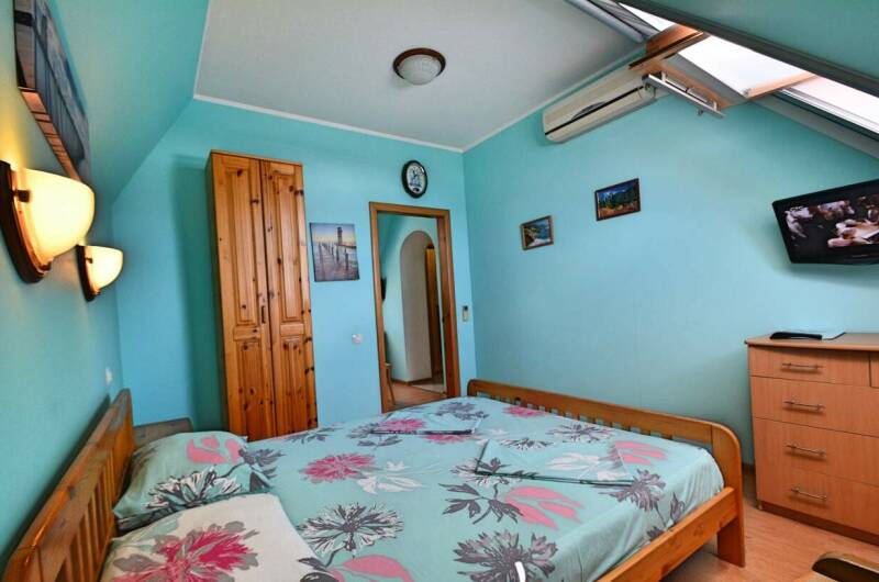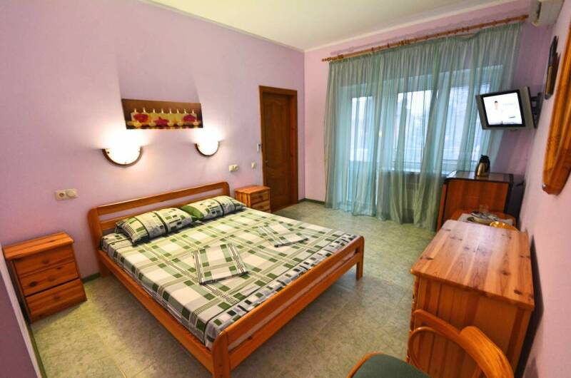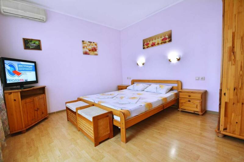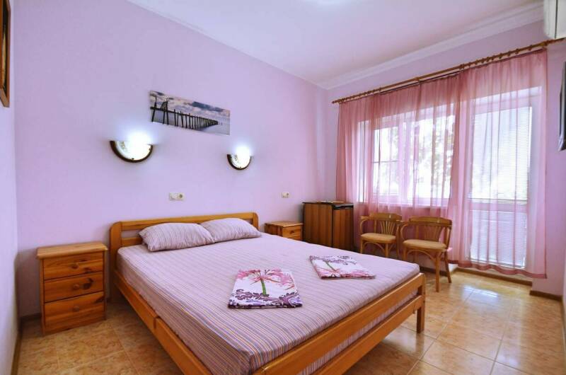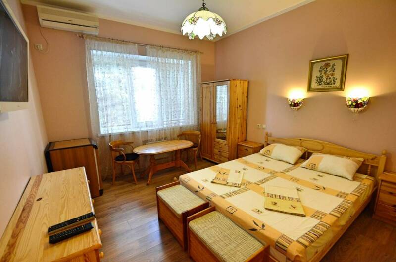 Гостевой дом расположен на большой и уютной территории. Номерной фонд состоит из и обустроенных комфортабельных номеров с меблированными балконами и видом на море и лес. В каждом номере установлены мебель (массив сосны или дуба), кондиционеры, отопление, жалюзи, холодильник, телевизоры (спутниковое телевидение — восемь каналов), сейф, фен, термос, комплект посуды. В номерах имеется санузел (туалет, ...