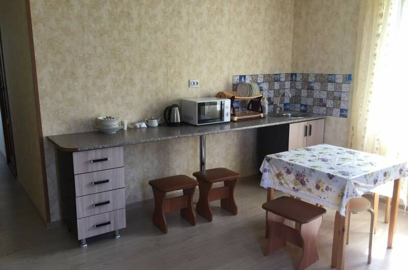 Номерной фонд гостевого дома состоит из 2-х, 3-х, 4-х местных комнат с удобствами, где есть ТВ, сплит-система, холодильник, шкаф, тумбочка, душ, туалет, Wi-Fi. К услугам отдыхающих есть две кухни для самостоятельного приготовления пищи.