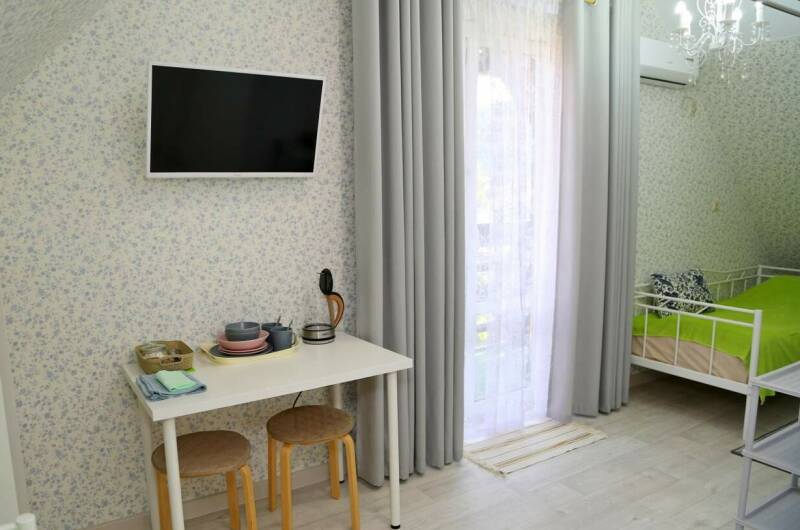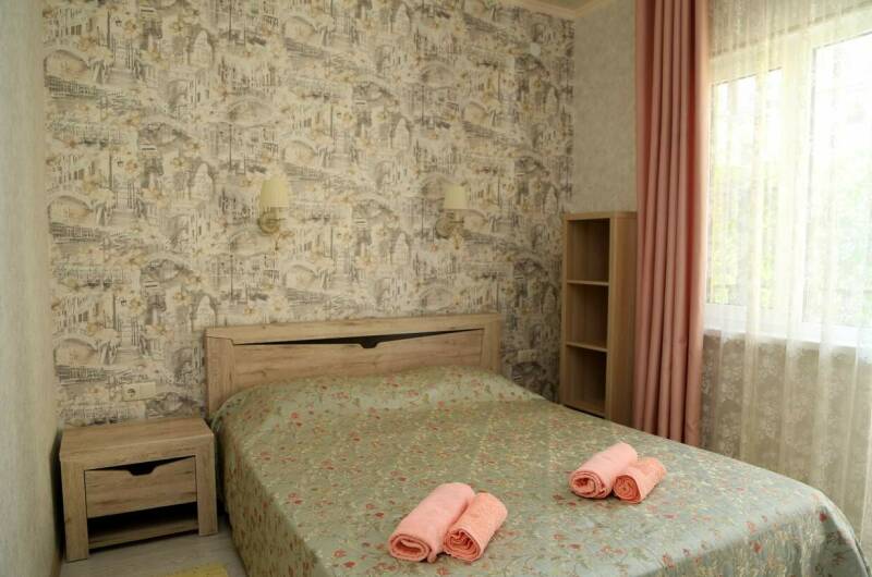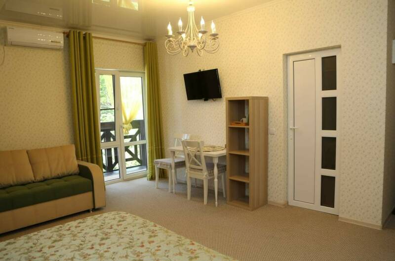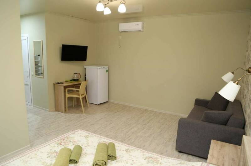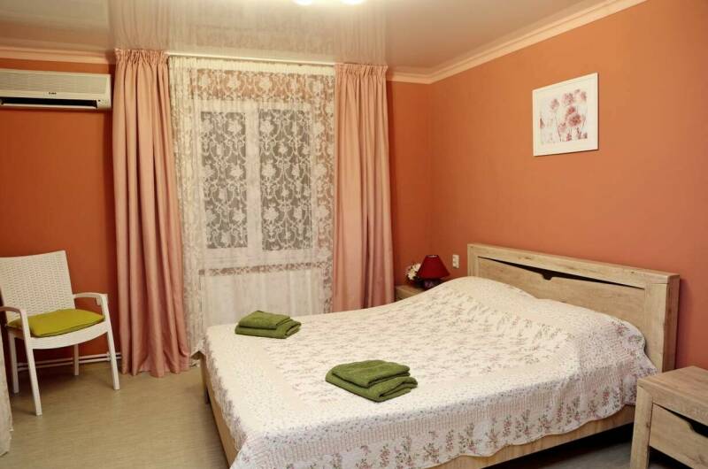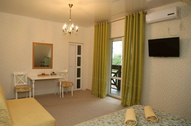 Для вашего отдыха мы предлагаем небольшое количество уютных комнат .В каждой комнате имеются ванная комната, кондиционер, телевизор и холодильник, беседка (1 этаж) или балкон (2 и 3 этаж). Горячая и холодная вода бесперебойно. В каждом номере «комфорт» есть возможность дополнительных спальных мест.