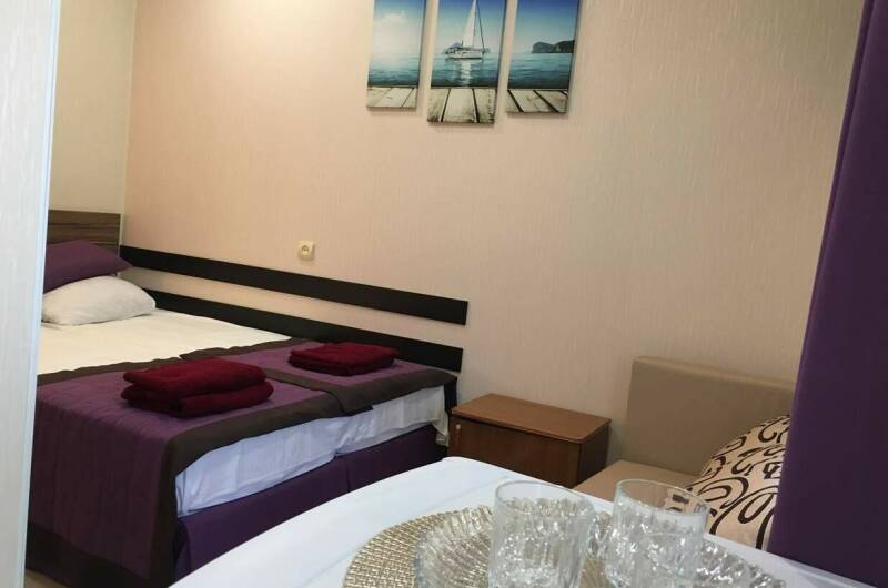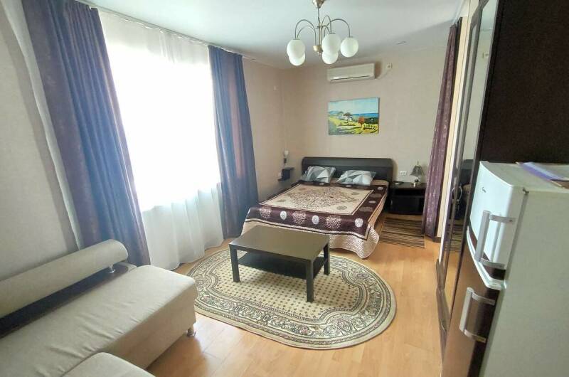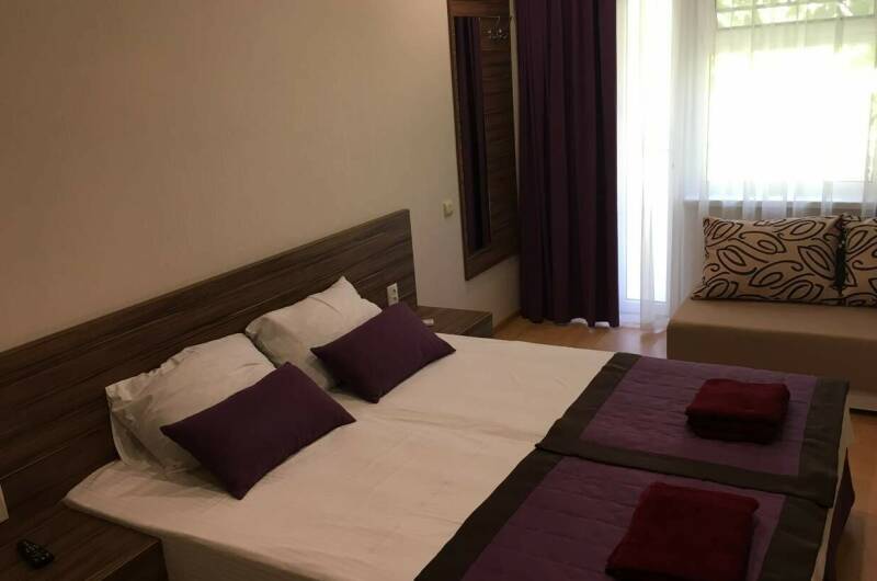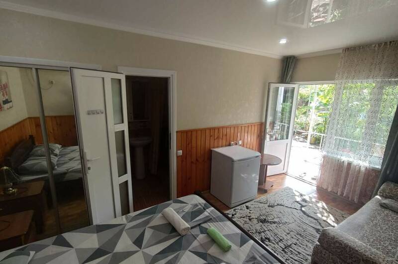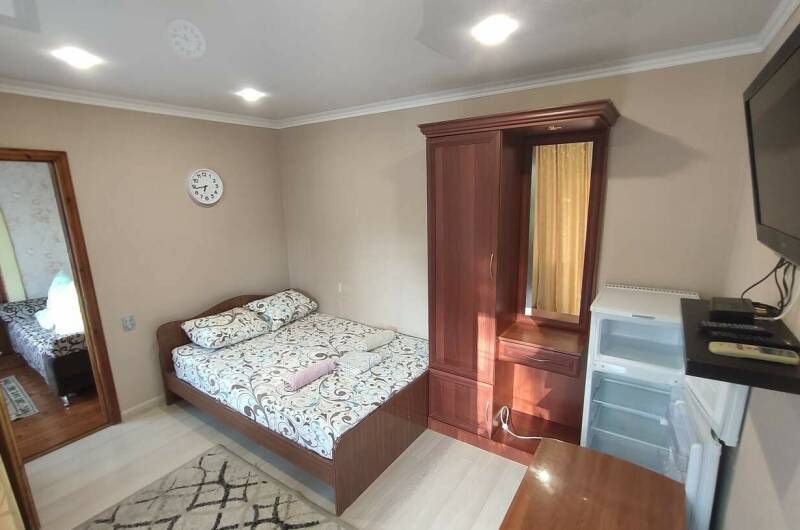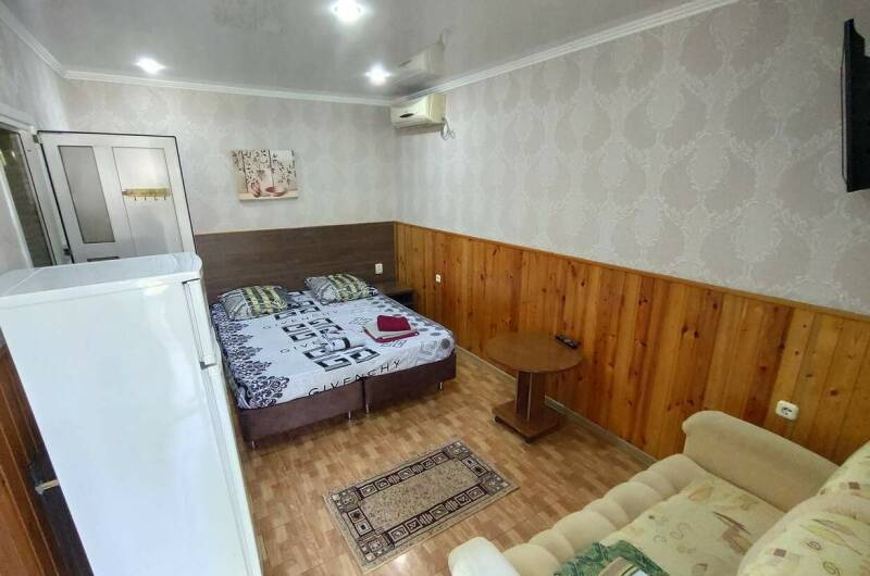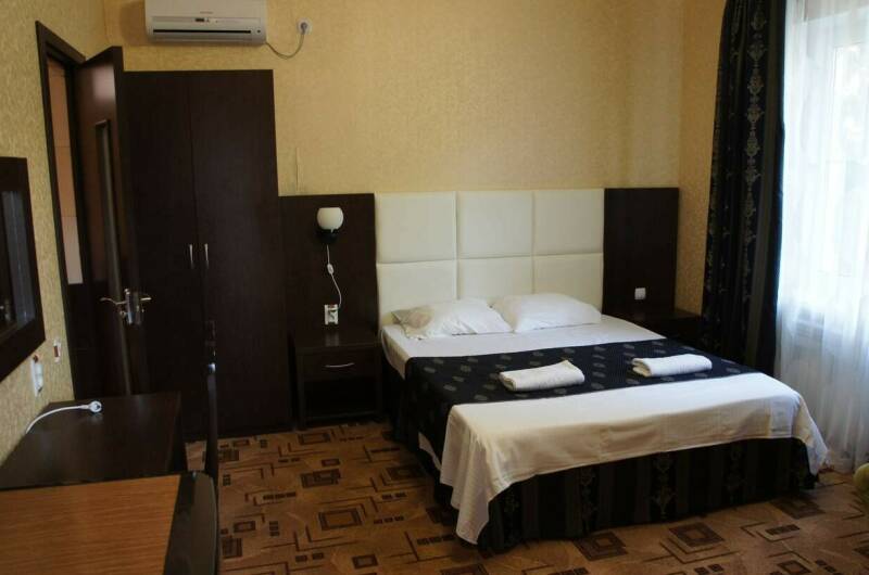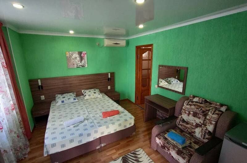Для вас 2-х, 3-х, 4-х местные номера различных уровней комфортности. А также, автостоянка, бар, оборудованные кухни, мангал для барбекю, просторная зона отдыха с зелеными насаждениями, беседками и фонтаном, а также подогреваемый бассейн (10×4 м) с оборудованной площадкой с шезлонгами.