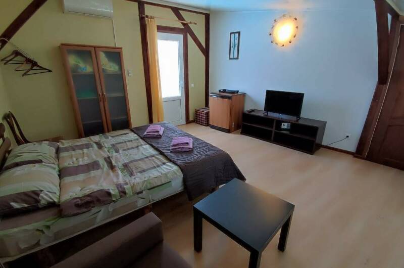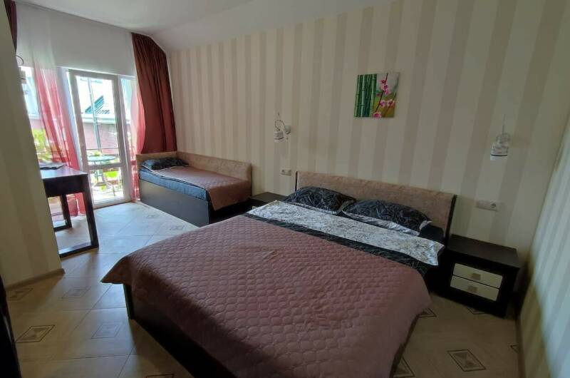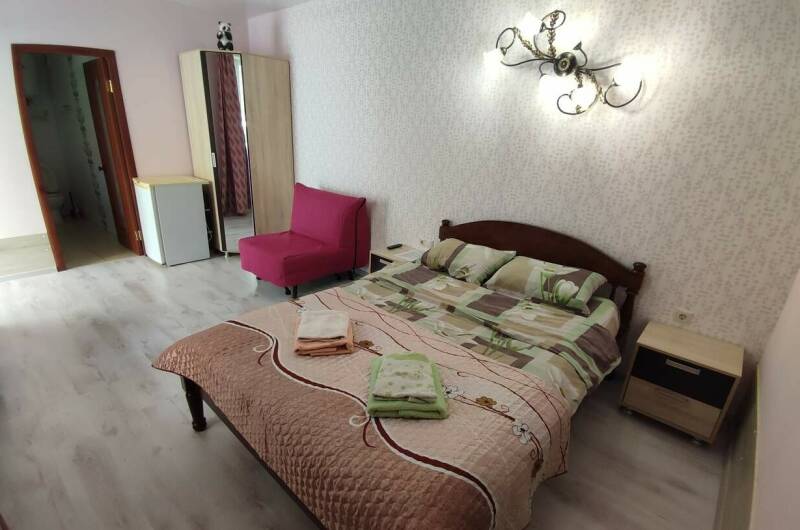 Мы предлагаем 2-х, 3-х, 4-х местные номера, есть двухкомнатный (особенно хорошо для родителей с детьми). В комнатах душ, туалет, холодильник, телевизор, кондиционер. Две летние кухни, вся необходимая посуда имеется, мангал, бассейн с подогревом.