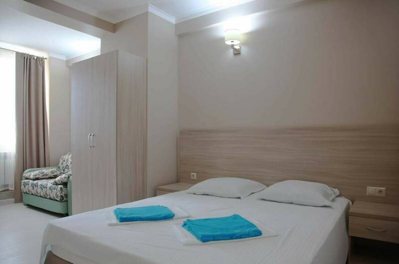 Набережная с пляжем находится в 600-х метрах от гостиницы (восемь минут ходьбы) со всем многообразием предоставляемых услуг: кафе и рестораны, дельфинарий, аквапарк, музей космонавтики, музей хлеба и вина, перевернутый дом, парк развлечений и т. д.
