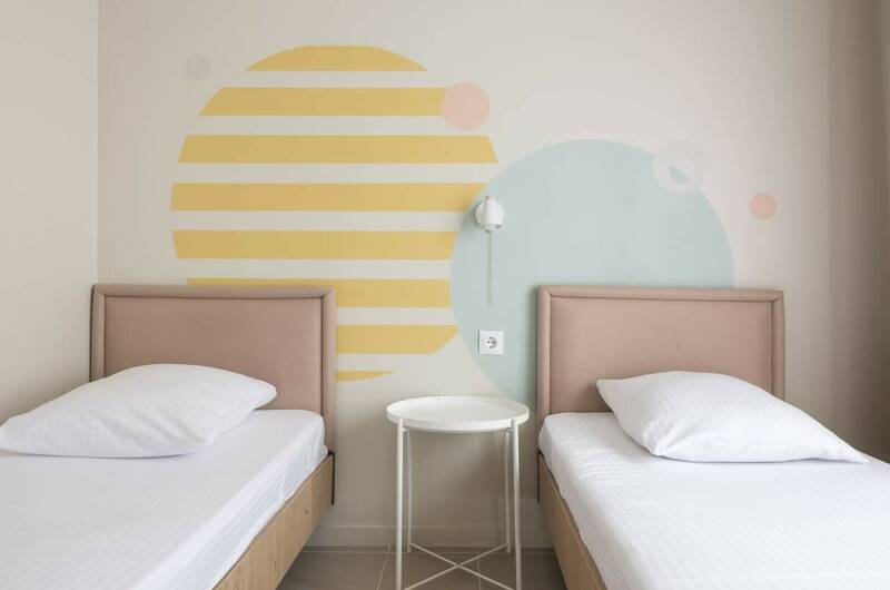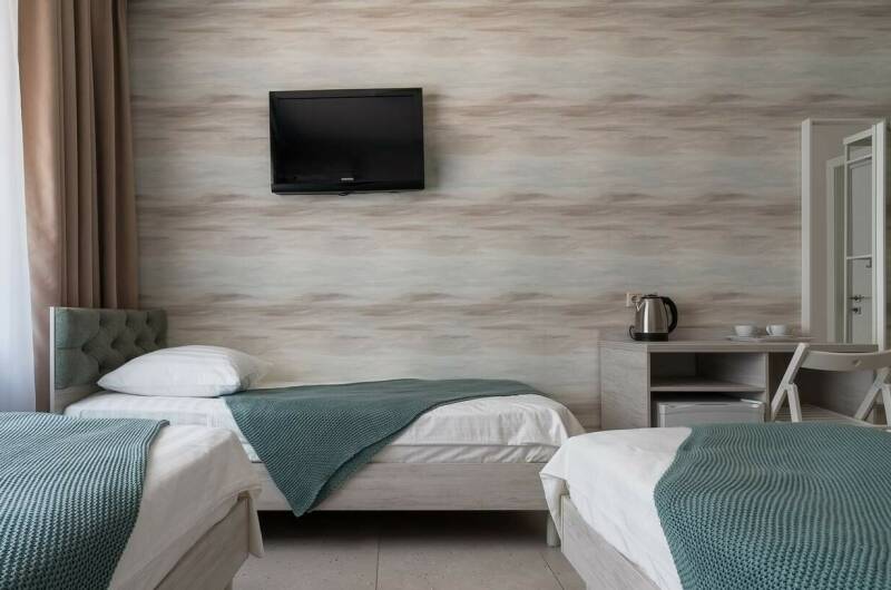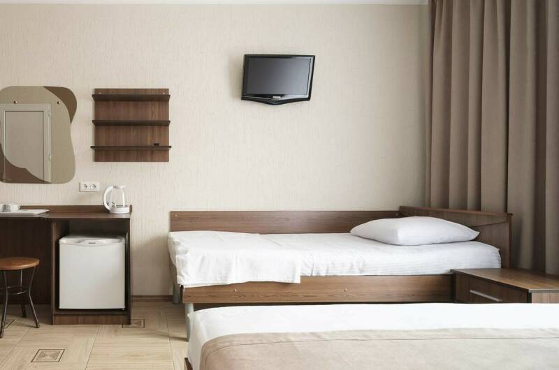 На территории гостиницы есть мангалы, большие общие балконы, где можно посидеть за столиком. Также есть столовая, где цены на завтраки невысокие, обеды и ужин. Парковка и Wi-Fi входит в стоимость номера.