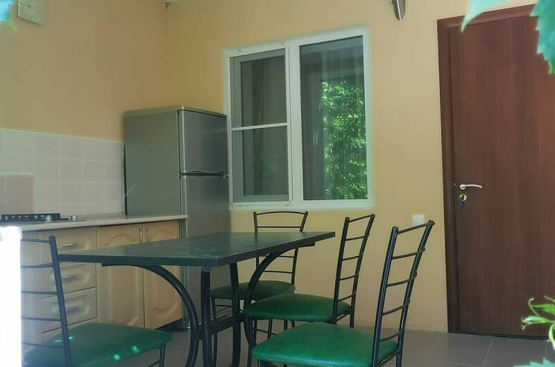 На территории гостевого дома так же достаточно много зелени есть мангал, фонтан с золотыми рыбками и детская площадка.